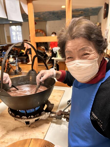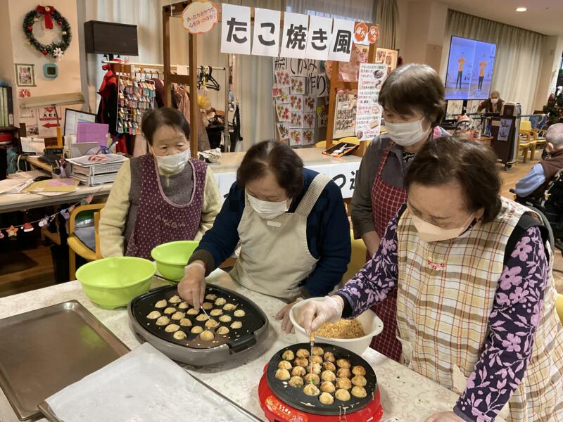 12月のおやつ週間はあったかおやつ週間でした。ぜんざいやピザ・たこ焼きなどを作り、出来立てを皆さんに食べていただきました。