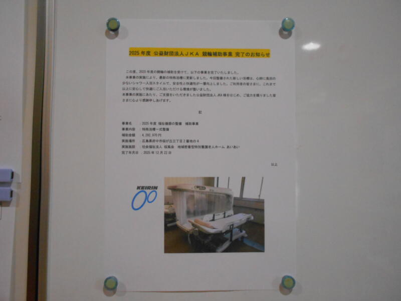 この度、2025年度の競輪の補助を受けて、以下の事業を完了いたしました。